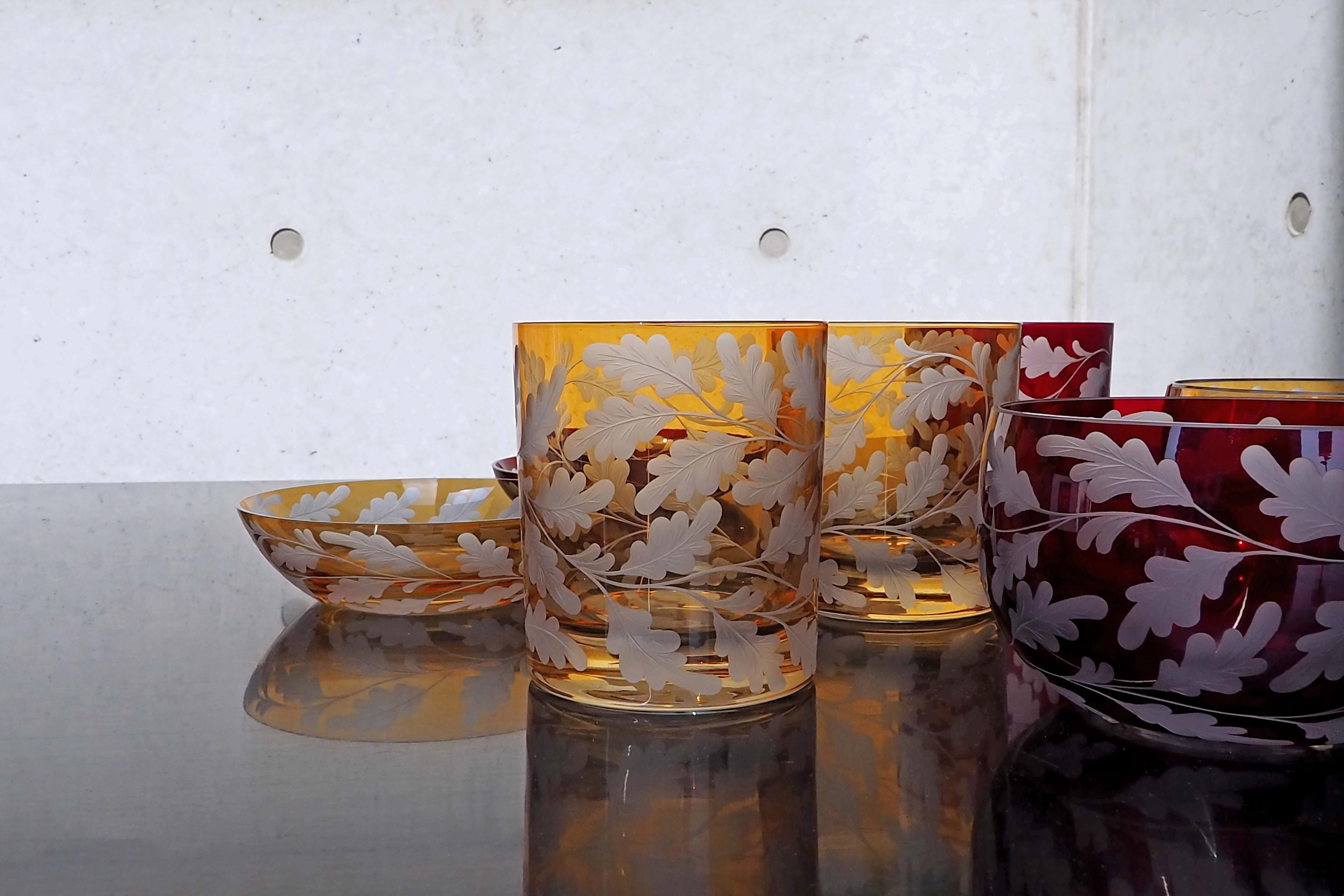 色彩與紋飾款式豐富,在季節輪替、節日慶祝之時,皆可隨性搭配使用,器皿類型涵蓋各式大小缽盤、酒器、杯皿。