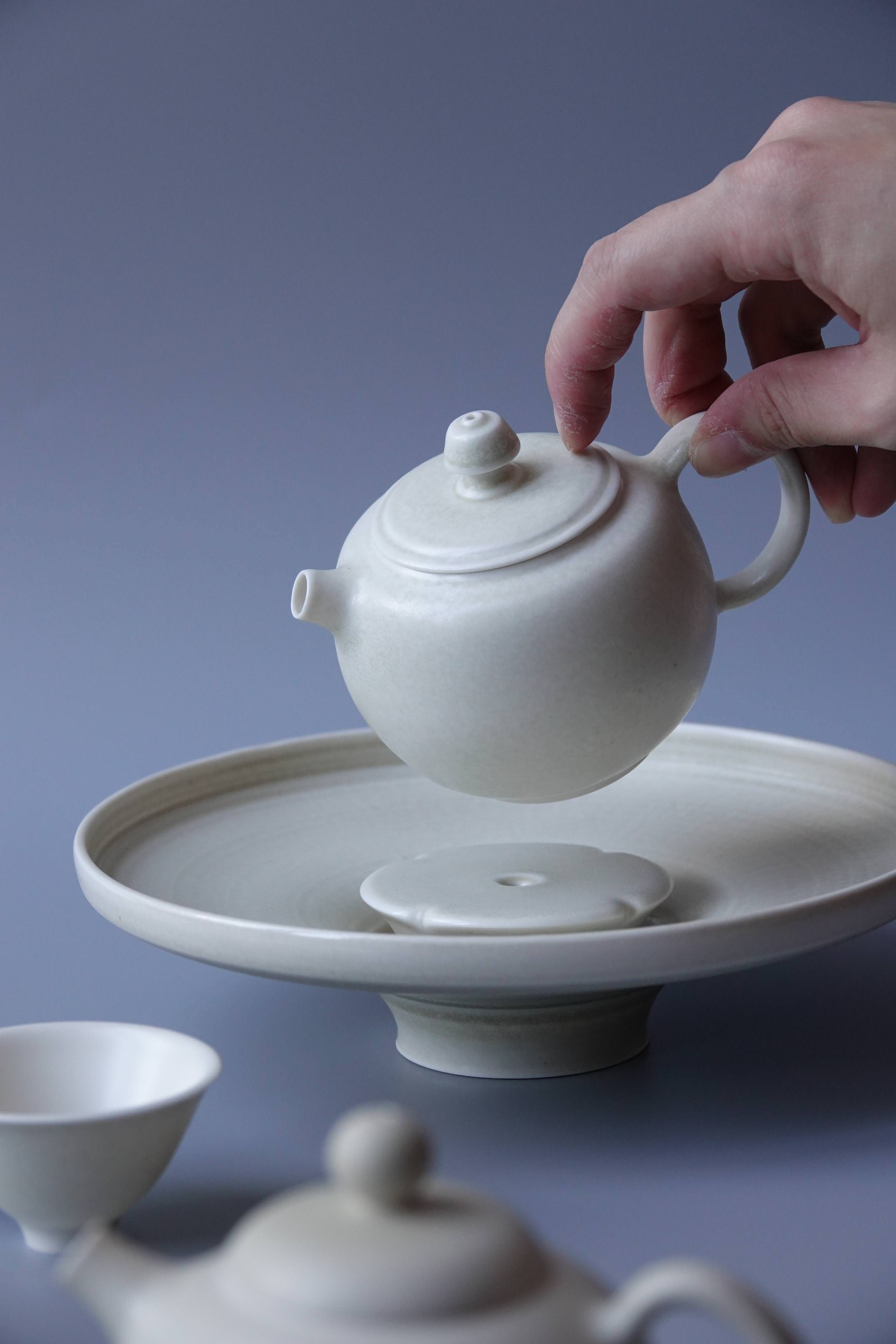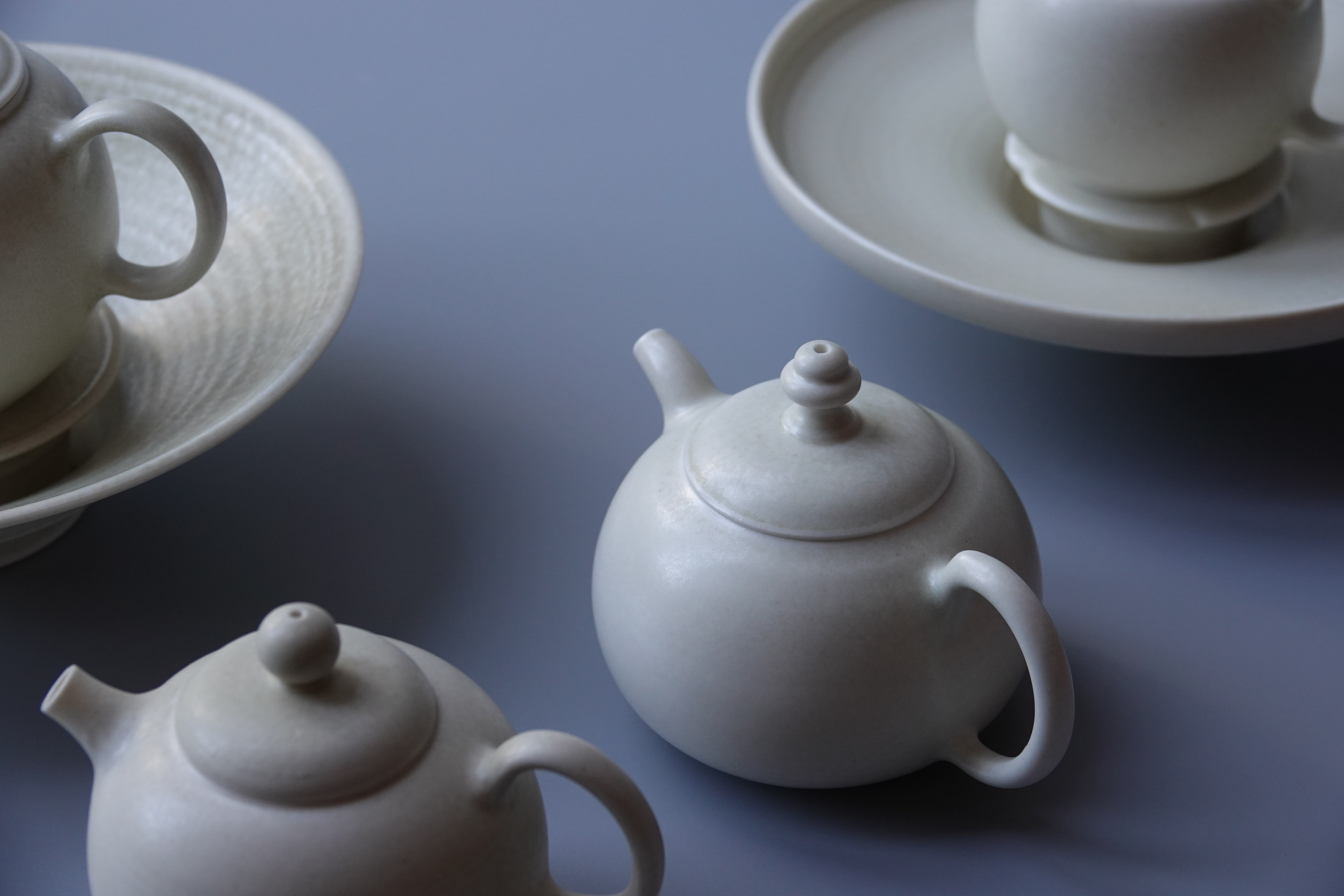 陳冠宇的薄胎土胚,經過連續四日夜的高溫柴燒,火痕流竄、木灰飛揚飄落,青、紅顏色浴火發色,終成一件件自然天成的《柴燒茶壺》。