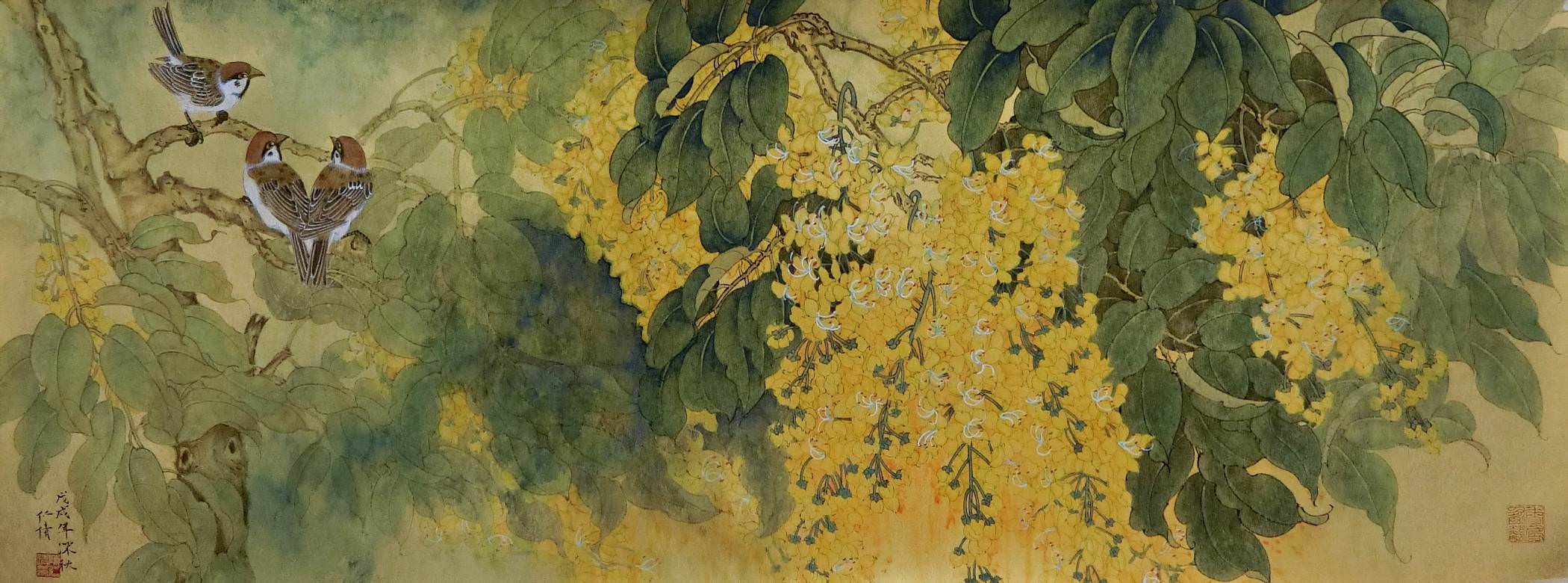 第五期夏季工筆畫課程圓滿結束,這期課程特別加入了別於以往的媒材「絹布」,因絹布材質的關係,適合用來營造一種朦朧清透的美感,經過老師的帶領與指導,從裁剪絹布、繃絹以及絹布的打底至構圖分佈繪畫並上色完成,在在這個夏季。