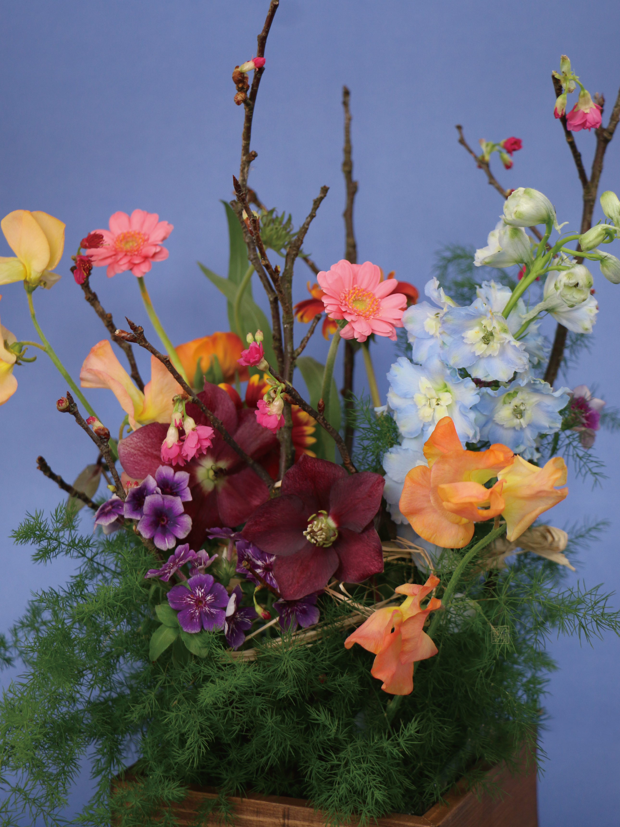 本次課程,講師呼執恩將示範如何透過當季花卉,調和出春季紋理,並教導學員擁抱花材特性,讓花朵們在相依相靠的有限空間裡,彼此支撐、完善整體作品架構。