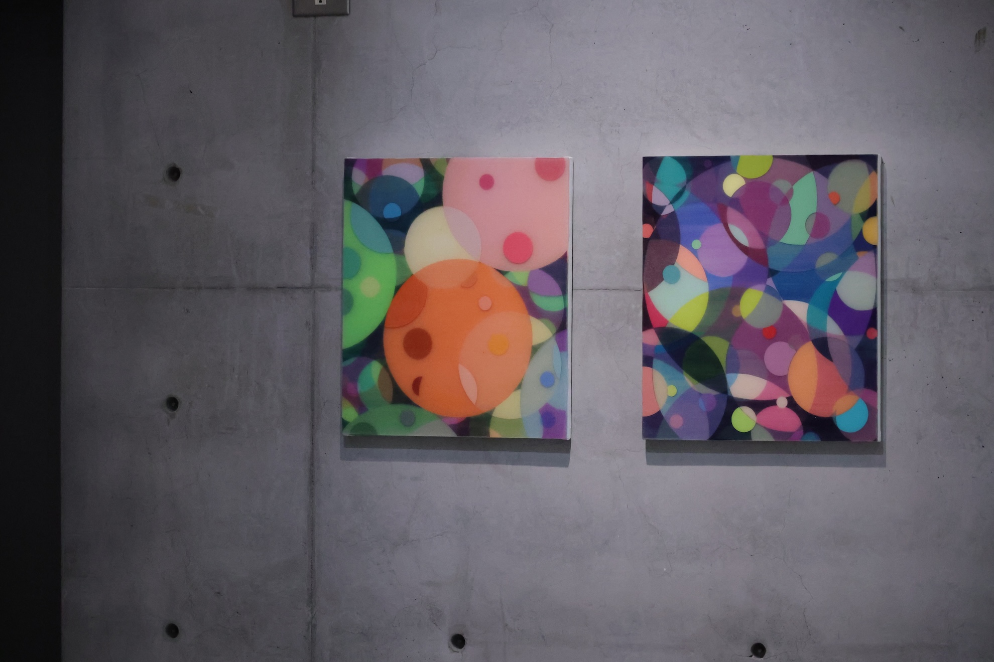 塚本智也|捨棄邊界與輪廓,以標誌性的三原色噴槍疊合技術,建構出一片波光粼粼的視覺森林。正如同立春時節陽光灑落花間的瞬息美感,帶領我們探索「存在」最輕盈的姿態。