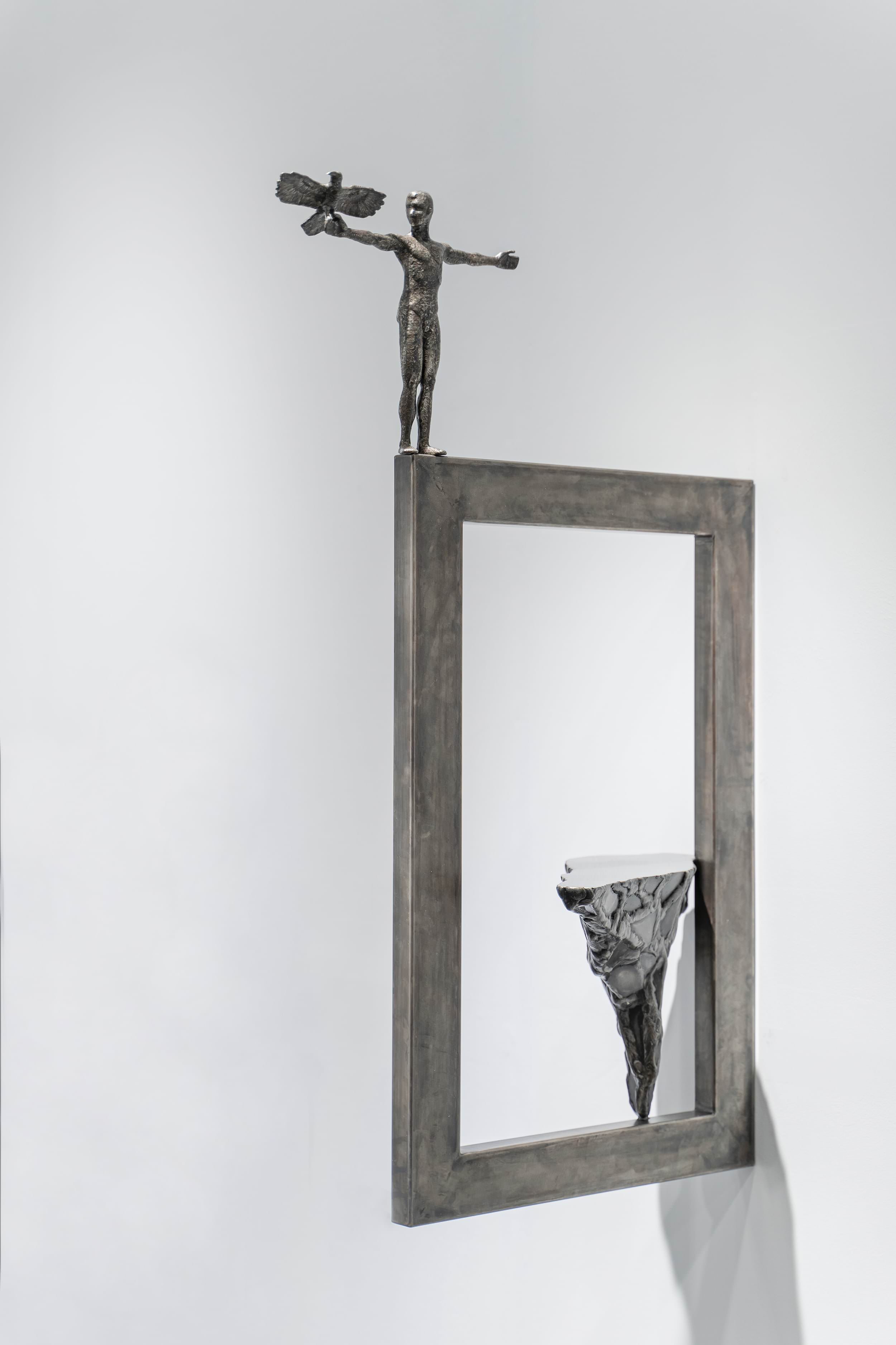 邊,或是界,一直有意無意的出現在作品中,有些作品甚至以邊界作為主體的方式呈現,或是轉化為構築輪廓的線條,讓形體有著不確定的外觀,使邊界產生流動的感受。現實的物質,與虛幻的心靈,兩者之間的碰撞產生了邊界,透過對於邊界的凝視與討論,我可以更為直接地以物質觸發心靈的自由;讓心靈寄託物質的殘留。因此我開始捨棄某些東方山水的元素,並面對更屬於自己的情感與內容,也讓自己的作品造型得以解放,不論是創作具象的型態,或是抽象的造型,都依然能夠保有我對於雕塑最初的感受,使物質與心靈建立起連結。