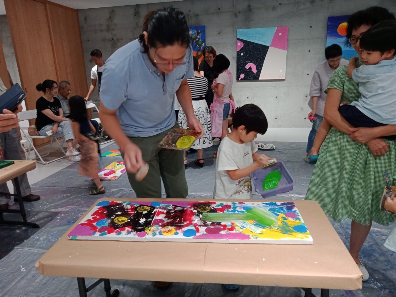 身為一位父親的藝術家鐘俊雄先生,除了用靜態的作品展現對於家庭的情感與感受,更將異於傳統展覽形式,結合動態活動與其子大綠地藝術創辨人鐘斌效共同帶領藝術教育工作坊,引導下一代體驗藝術的美好,讓每位參與的父母、子女,同時延伸至祖孫三代,一同來透過藝術呈現傳遞家的回憶,凝聚起家人間的無價親情。