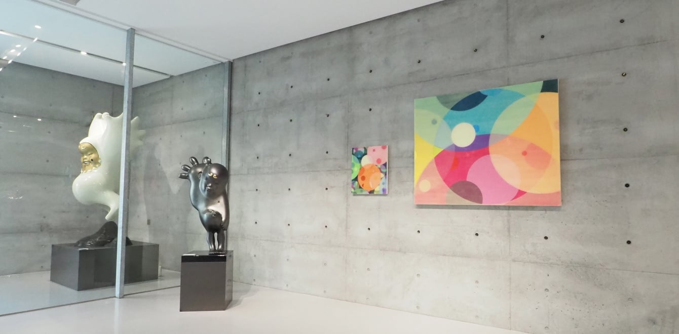 日本藝術家山本雄基的經典圓形色層作品、塚本智也光與色彩相遇的瞬間。三位藝術家於展場中所激盪出的漣漪,令人置身其中彷彿墜入藝術家意識的世界般,目眩神迷。